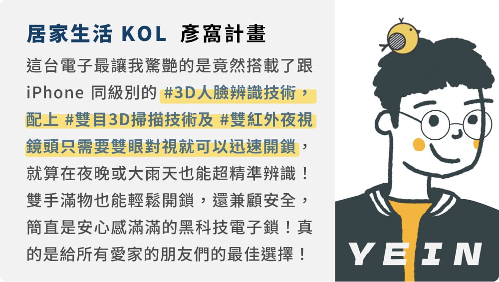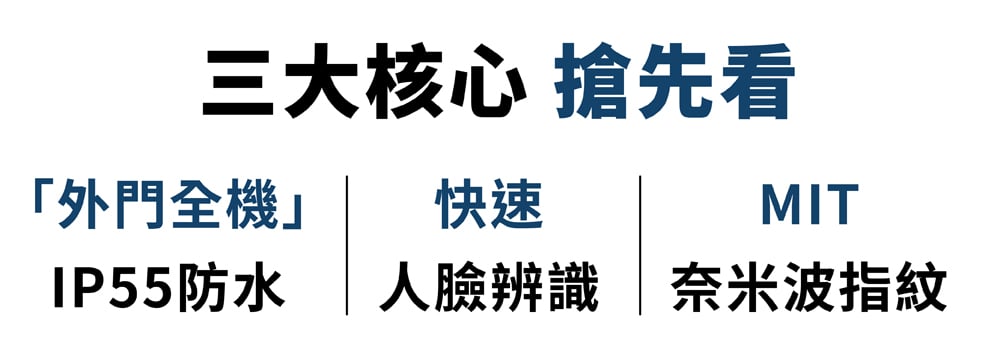我們拜訪了台灣許多工廠,終於找到 MIT 奈米波指紋辨識技術!利用奈米波來擷取指紋圖像,可以得到更清晰的指紋圖像,達到水中解鎖的功能、而且觸控喚醒也可以更省電!再結合日本技術防沾塗層 + IML覆膜技術,以及全面板防水鋼化玻璃層,打造這支 IP55 防水防塵、防刮耐磨的電子鎖!